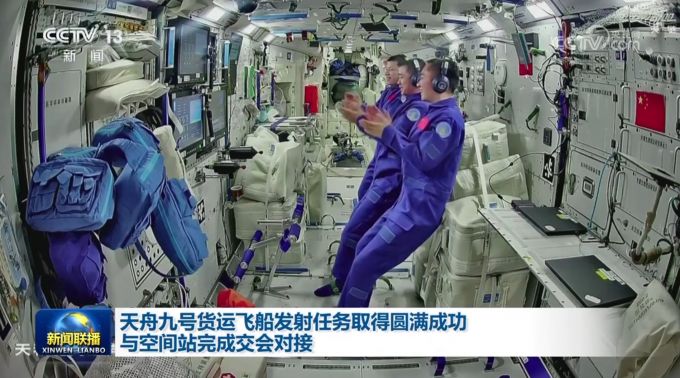 5时34分,长征七号遥十运载火箭准时点火起飞,约10分钟后,天舟九号货运飞船与火箭成功分离并进入预定轨道,之后飞船太阳能帆板顺利展开,神舟二十号航天员乘组也在空间站观看了天舟九号发射实况。
