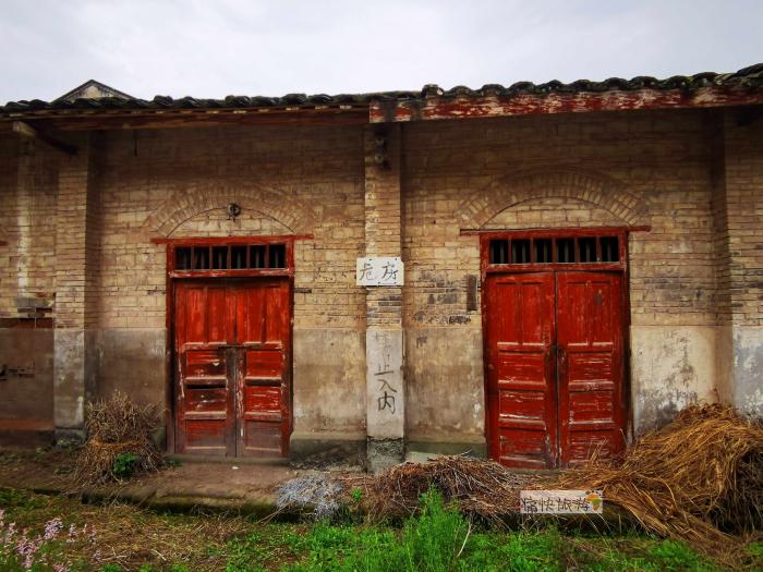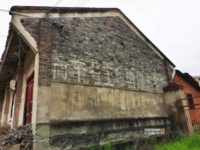 老街中段尚存一排年代建筑,临街面为一间间商铺,从建筑风格推断可能是人民公社时期修建的。