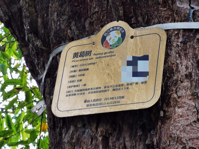 树上挂有的铭牌记载着这棵古树的信息牛壹佰,这是一棵500年树龄的黄葛树,属国家一级古树名木。这是痛快旅游多年“行走乡间·发现自贡”以来,第一次遇见的500年的黄葛树,而且还是两棵相对的古树名木。