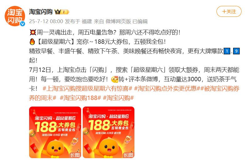 今天早上,@淘宝闪购 也发文宣布发放“188元大券包”冠盈配资,周末两天都能用。