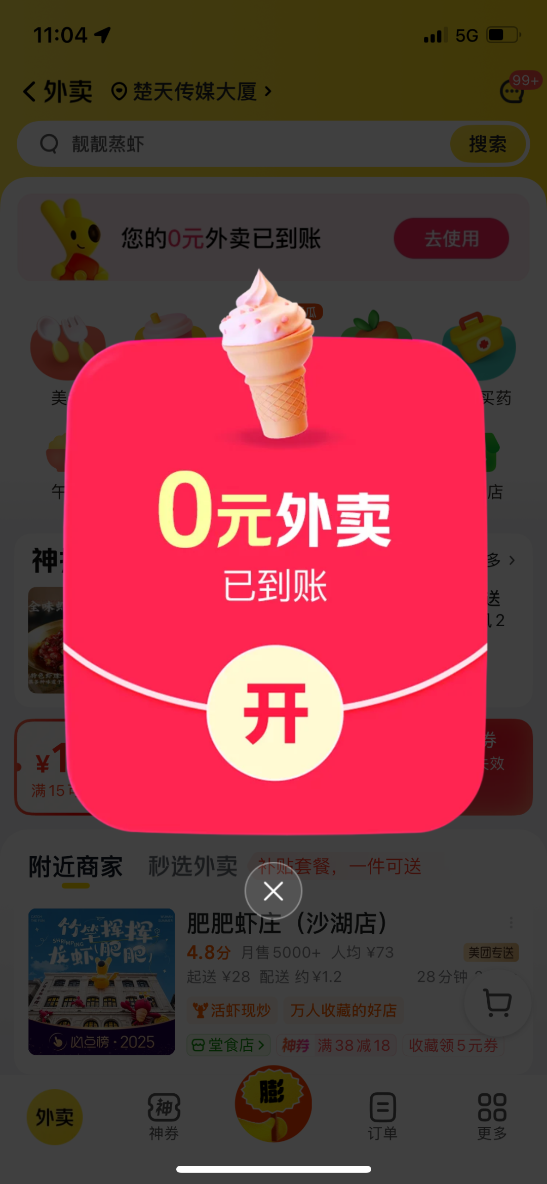 记者打开美团外卖,随即收到“0元外卖已到账”的弹窗,点开即领取了一张古茗鲜活柠檬水兑换券。