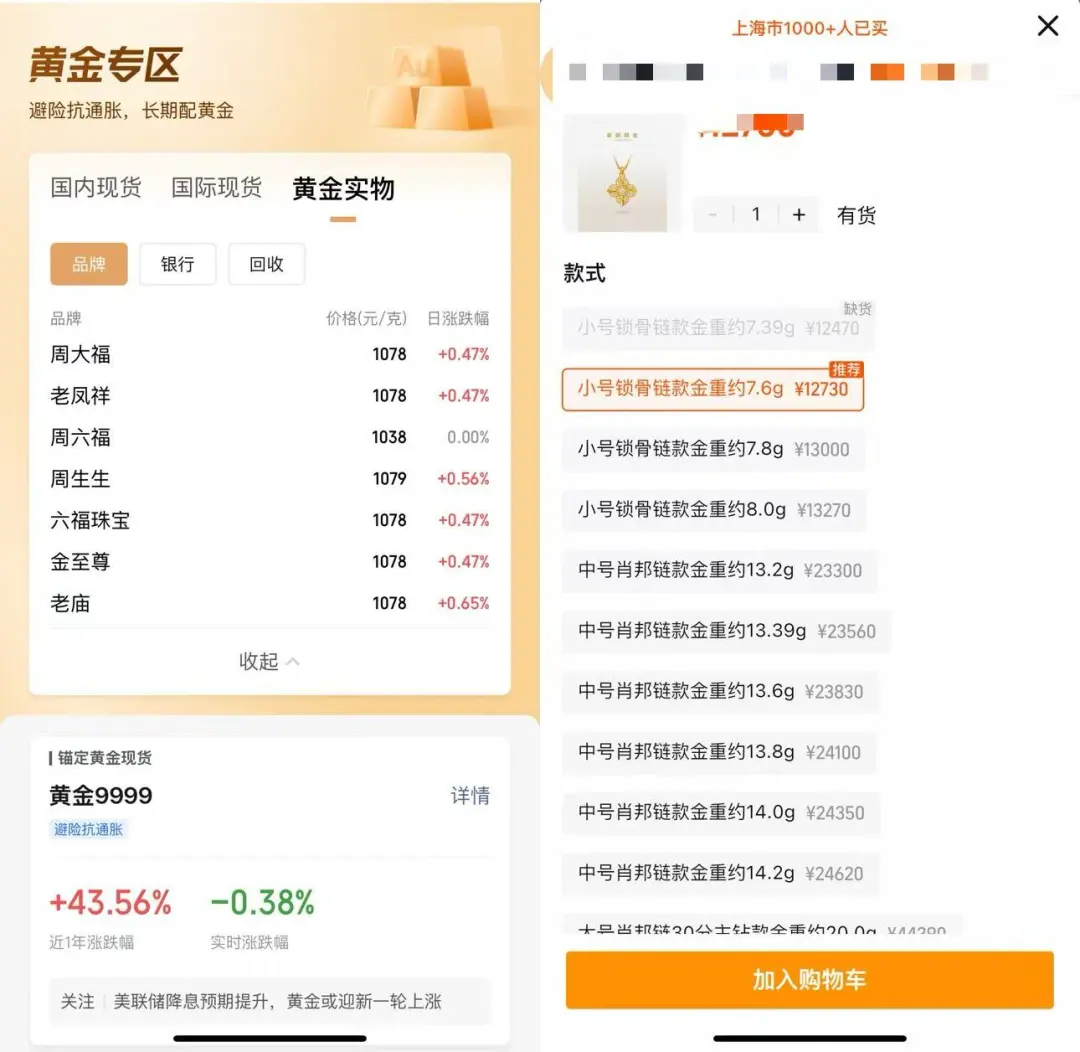 popop店员表示,该系列新品并非限定产品,价格不会按照金价浮动。根据工艺不同,足金系列产品的每克单价主要集中在1300-1700元之间。相比今日大盘价和绝大多数品牌金价,popop产品显然有一定溢价。