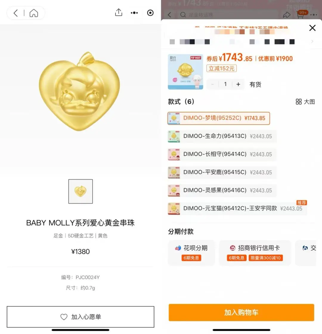 而现在冠达管理,推出一口价足金产品的泡泡玛特是要向老铺黄金看齐了吗?