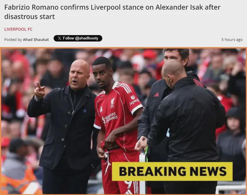 而且从精神层面上说,伊萨克夏天为了加盟利物浦和纽卡斯尔开战,这是个复杂的夏天,身心都是。利物浦确信,只要伊萨克找回身体状态,他就会闪耀、会进球的。