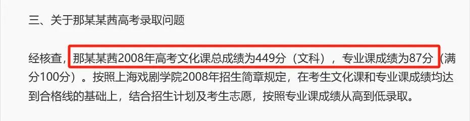 经调查,那尔那茜的高考文化课成绩是文科449分,并不是网传的179分,是正规录取。