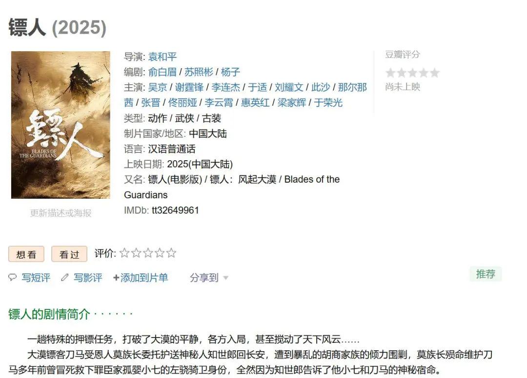 尤其是《镖人》,这部由袁和平执导,吴京监制并领衔主演的武侠大片自立项以来就备受期待,演员阵容还有李连杰、谢霆锋、于适等。